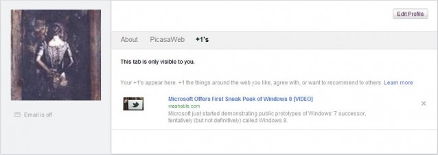 Πώς μπορείτε να δείτε όμως σε ποια posts και σε ποια sites έχετε δώσει +1; Αν μπείτε στο προφίλ του google λογαριασμού σας, έχει ήδη ενεργοποιηθεί η ένδειξη +1, όπου μπορείτε να δείτε συγκεντρωμένες τις προτιμήσεις και συστάσεις σας.