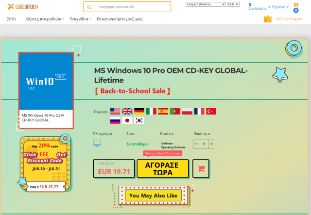 Καλωσορίσατε στις Back-to-School εκπτώσεις του GOODOFFER24.com, με σούπερ εκπτώσεις σε Windows και Office έως και 91%! Αυτές οι προσφορές σάς δίνουν τη δυνατότητα να αγοράσετε μια εφ’ όρου ζωής άδεια χρήσης Windows 10 PRO μόνο με 12€! Μια αυθεντική και εφ’ όρου ζωής άδεια για την οποία το GOODOFFER24.com σας παραχωρεί μια περίοδο 30 ημερών από την ημερομηνία αγοράς για να έχετε άδεια αντικατάστασης σε περίπτωση οποιουδήποτε προβλήματος. Αν, από την άλλη, θέλετε να επωφεληθείτε από την ήρεμη περίοδο των καλοκαιρινών μηνών για να οργανώσετε τα έγγραφα και τα excel σας, μην χάσετε τις εξαιρετικές προσφορές στα πακέτα του Office που, στην έκδοση του 2016, μπορείτε να αγοράσετε με περίπου € 22, και στην προκειμένη περίπτωση με άδεια. ΖΩΗ!