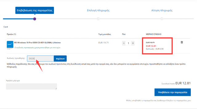 Η νέα τιμή θα εμφανιστεί αυτόματα. Κάντε κλικ στην Υποβολή παραγγελίας και επιλέξτε τον τρόπο πληρωμής σας.