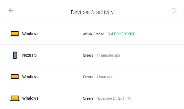 Η λίστα εμφανίζει τις συσκευές που έχουν συνδεθεί τις τελευταίες 28 μέρες, ενώ η τρέχουσα σύνδεσή σας έχει δίπλα το χαρακτηρισμό “current device” και βρίσκεται στην κορυφή.