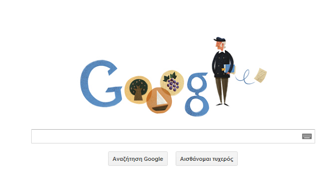 Στο Doodle εμφανίζονται μία ελιά, ένα καράβι και ένα τσαμπί σταφύλι , παραπέμποντας στο ακόλουθο γνωστό απόφθεγμα του μεγάλου ποιητή: