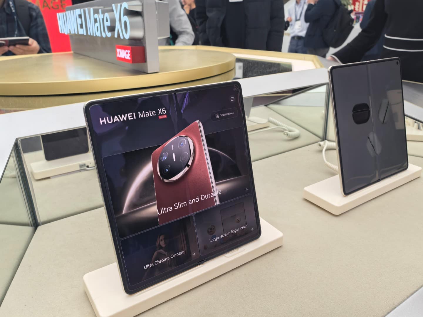 Στους ειδικά διαμορφωμένους χώρους του booth της Huawei στη Βαρκελώνη, οι επισκέπτες μπορούσαν να πάρουν μια δυνατή γεύση από το μέλλον της mobile τεχνολογίας. Στο επίκεντρο της προσοχής βρέθηκε το HUAWEI Mate XT | ULTIMATE DESIGN, το πρώτο τρίπτυχο smartphone στον κόσμο, το οποίο διαθέτει μια επαναστατική οθόνη που διπλώνει τόσο προς τα μέσα όσο και προς τα έξω.