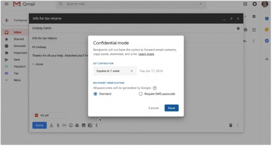 Τέλος, μια νέα παράμετρος εμπιστευτικότητας (Confidential Mode), σας επιτρέπει να ελέγχετε τον τρόπο προώθησης, αντιγραφής, λήψης ή εκτύπωσης του μηνύματός σας – πράγμα ιδιαίτερα χρήσιμο όταν πρέπει να στείλετε ευαίσθητες πληροφορίες μέσω email, όπως φορολογικά ή ασφαλιστικά στοιχεία. Σας δίνει επίσης τη δυνατότητα να παρατείνετε τη διάρκεια ζωής ενός μηνύματος μετά τον καθορισμένο χρόνο, ώστε να σας βοηθήσει να διατηρήσετε τον έλεγχο των πληροφοριών σας.