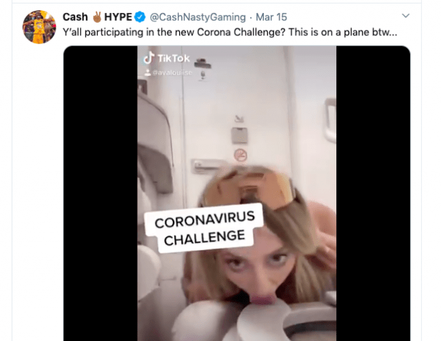Y’all participating in the new Corona Challenge? This is on a plane btw… pic.twitter.com/w1XwVRZd87
