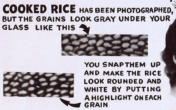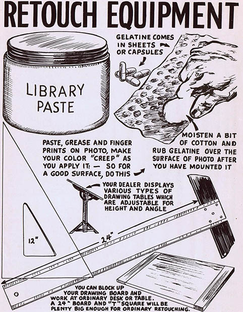Το 1946 κυκλοφόρησε ένα βιβλίο το οποίο ανακάλυψαν οι άνθρωποι του CreativePro και αποφάσισαν να σκανάρουν μερικές από τις εικονογραφήσεις. Ο τίτλος του είναι «Shortcuts to Photo Retouching for Commercial Use», συγγραφέας του ο Raymond Wardell και δεν είναι τίποτε άλλο παρά ένας αναλυτικότατος οδηγός για όλα όσα έπρεπε να κάνει και να υπολογίσει ο φωτογράφος της εποχής για να κάνει επιτυχημένο ρετούς στις φωτογραφίες του. Ας πάρουμε μία πολύ μικρή ιδέα.