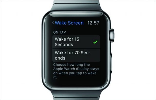 από τη συσκευή. Στο μενού Ρυθμίσεις – Οθόνη του Apple Watch λοιπόν, μπορείτε να θέσετε το όριο της οθόνης στα 15 δευτερόλεπτα αντί