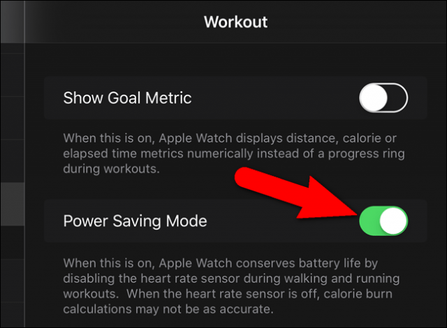 Αν φοράτε διαρκώς το Apple Watch όση ώρα γυμνάζεστε τότε η αυτονομία του περιορίζεται σημαντικά εξαιτίας της fitness tracking λειτουργίας του. Για να αυξήσετε την αυτονομία αυτή, μπορείτε να ενεργοποιήσετε την Power Saving λειτουργία στο μενού Workout (Εκγύμναση) της εφαρμογής Apple Watch στο iOS.