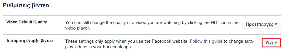 Τέλος, σε iOS συσκευές, η επιλογή για απενεργοποίηση της αυτόματης έναρξης βίντεο βρίσκεται στις ρυθμίσεις του iOS, επιλέγοντας τη Facebook εφαρμογή, στη συνέχεια πάλι ρυθμίσεις και τέλος την επιλογή για αυτόματη έναρξη. Δυστυχώς, δεν υπάρχουν εικόνες με τη διαδικασία, όμως πιστεύω πως δε θα αντιμετωπίσετε κάποιο πρόβλημα.