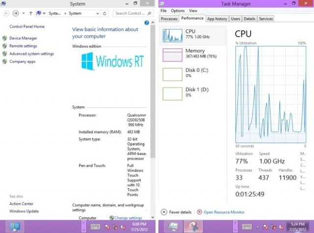Δυστυχώς, η ανάλυση του κινητού, δεν επιτρέπει την λειτουργία των modern UI (Metro) εφαρμογών, ωστόσο όπως επισήμανε ο power user από την Ρωσία, όλες οι εφαρμογές του desktop UI για Windows RT τρέχουν κανονικά και χωρίς προβλήματα.