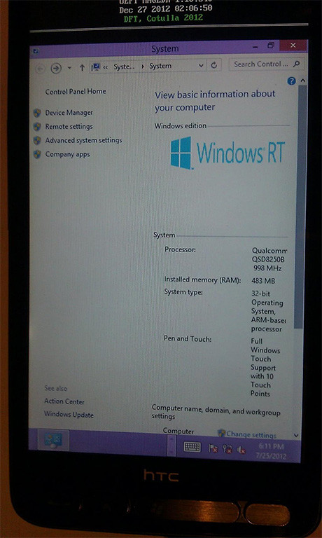 Ένας power user από την Ρωσία, με το ψευδώνυμο @CotullaCode στο Twitter, κατάφερε λοιπόν να εγκαταστήσει το νέο λειτουργικό σύστημα της Microsoft στο HTC HD2 με επιτυχία, χωρίς ωστόσο να δημοσιοποιήσει τον τρόπο και την μέθοδο που ακολούθησε για να να καταστήσει κάτι τέτοιο δυνατόν. Από τις φωτογραφίες του κινητού πάντως που δημοσίευσε να τρέχει Windows RT, δείχνει το λειτουργικό να τρέχει κανονικά αν και χωρίς δυνατότητα ασύρματης δικτύωσης, ωστόσο αυτό είναι κάτι που ελπίζει να διορθώσει όπως λέει.