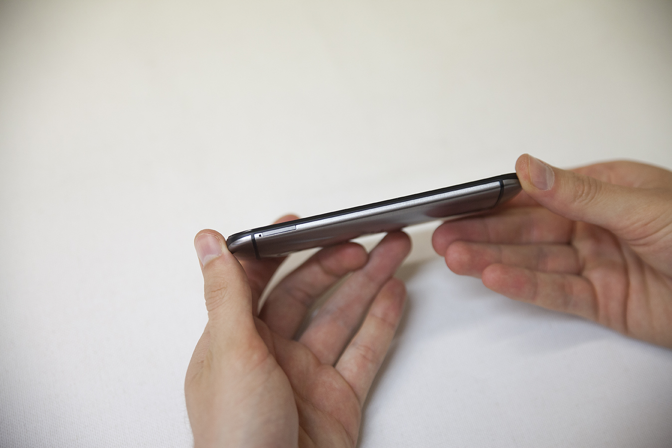Στη μια πλευρά θα βρείτε το συρταράκι για τη microSD κάρτα και στην άλλη αυτό της nano-SIM, μια επιλογή στην οποία εμμένει η HTC για όλη την οικογένεια One. To power-lock button βρίσκεται στο πάνω μέρος και είναι πλαστικό, σε μαύρο χρώμα για να ταιριάζει με το πάνω τμήμα, ενώ στη δεξιά πλευρά θα βρείτε το διπλό volume πλήκτρο που θα θέλαμε να δίνει λίγο περισσότερο feedback και να εξέχει κάπως. Πάνω και κάτω από την οθόνη βλέπουμε τα Boomsound ηχεία και Gorilla Glass 3 προστατεύει το panel αφής.