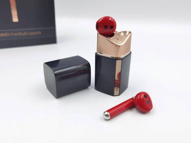 Αυτό που κάνει τα FreeBuds Lipstick τελείως διαφορετικά από κάθε ανταγωνιστή τους, όμως, είναι το design. Τα buds έχουν κλασικό σχεδιασμό αλλά σε πολύ έντονο, κόκκινο χρώμα που σίγουρα είναι “μαγνήτης”. Ωστόσο, η θήκη είναι αυτή που κάνει τη διαφορά, καθώς θυμίζει lipstick, όπως υποδηλώνει και η ονομασία του προϊόντος. Όποιος κάθεται απέναντί σας μάλλον θα… “τα χάσει” για λίγα δευτερόλεπτα, προσπαθώντας να καταλάβει τι συνέβη όταν βγάλατε τα ακουστικά και τα φορέσατε. Ο συνδυασμός μαύρου και χρυσού χρώματος με το κόκκινο των buds (που εξέχουν της θήκης θυμίζοντας lipstick), είναι εντυπωσιακός και το σχήμα της θήκης παραπέμπει επίσης σε lipstick.