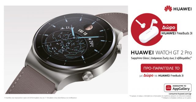 Ο Οκτώβριος είναι ο μήνας της HUAWEI και στις προσφορές στο επίσημο δίκτυο συνεργατών συμπεριλαμβάνεται και το ολοκαίνουριο Watch GT 2 Pro. Για όσους δεν πρόλαβαν τις προπαραγγελίες, οι προσφορές συνεχίζονται, καθώς έως και τέλος Οκτωβρίου, με κάθε αγορά του HUAWEI Watch GT2 Pro, παίρνετε δώρο τα HUAWEI Freebuds 3i, έναν ιδανικό σύντροφο για να συμπληρώσετε τα tech gadgets σας.