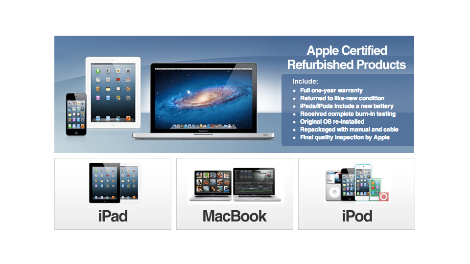 Προς το παρόν, έχει λίγα αντικείμενα προς πώληση, δίνοντας τη δυνατότητα σε αγοραστές να προμηθευτούν refurbished προϊόντα της Apple στις ίδιες τιμές μ’ αυτές που υπάρχουν στο σχετικό refurbished store του Apple.com. Τα προϊόντα πωλούνται με εγγύηση ενός έτους, νέα μπαταρία, τα καλώδιά τους και όλα τα καλούδια που συναντά κανείς σ’ αυτές τις πωλήσεις.