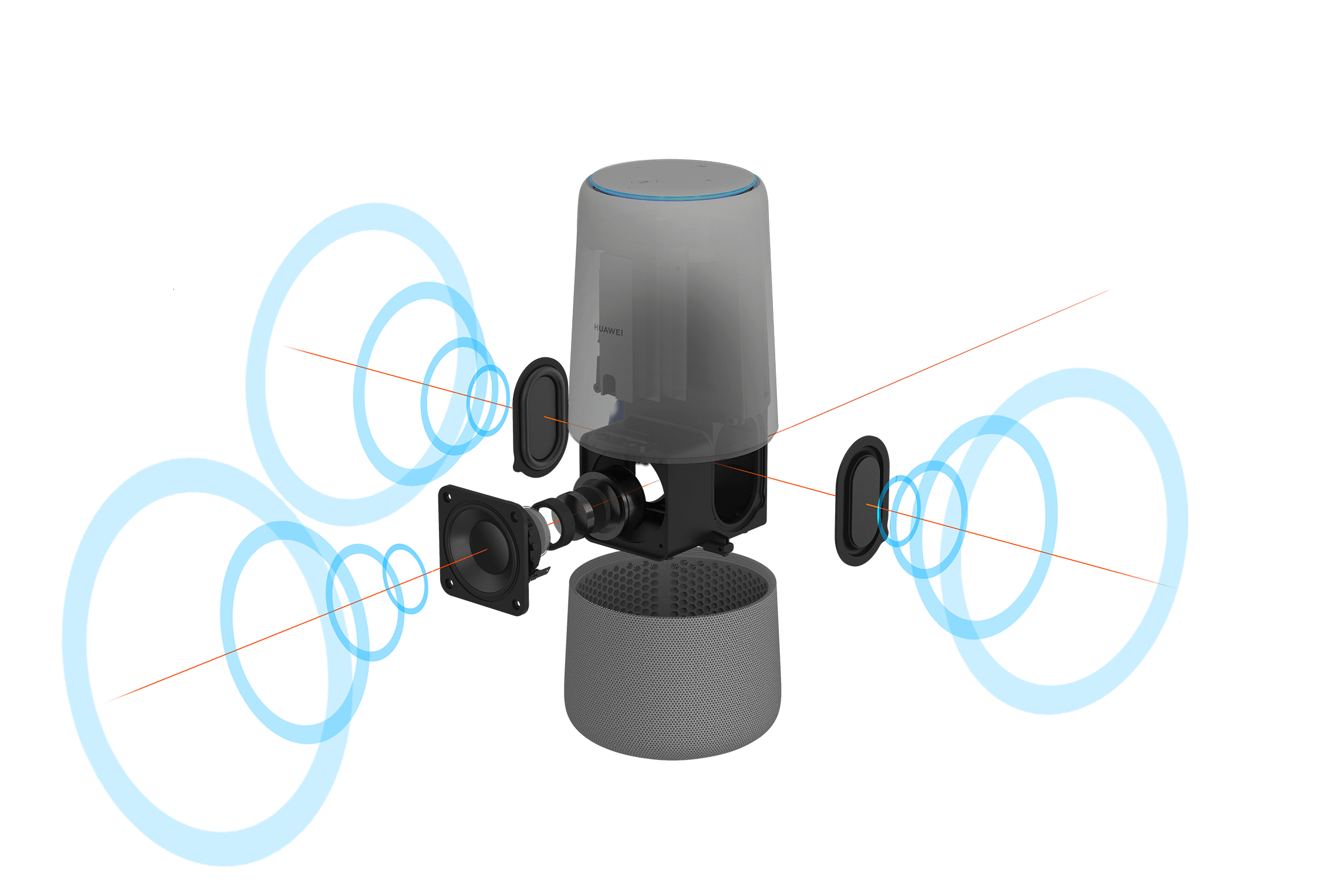 Από την άποψη της απόδοσης των ηχείων, το HUAWEI AI Cube είναι κατασκευασμένο με μια μεγάλη, ηχητική κοιλότητα 400ml και ένα διάφραγμα αλουμινίου, επιτρέποντας στο ηχείο AI να παράγει υψηλής ποιότητας ήχο με κρυστάλλινα μεσαία και υψηλά επίπεδα, καθώς και πλήρη, δυναμικά μπάσα. Ο ήχος βελτιώνεται επίσης με την τεχνολογία βελτιστοποίησης ήχου της Huawei: HUAWEI Histen. Το HUAWEI Histen εμπλουτίζει το σύνολο των χαρακτηριστικών του ομιλητή AI, συμπεριλαμβανομένων των εικονικών μπάσων (virtual bass), του ισοσταθμιστή γραμμικής φάσης (linear phase equalizer), του προσαρμοστικού ελέγχου gain (adaptive gain control), της φωνητικής αναγνώρισης σε μεγάλη απόσταση και πολλών άλλων, ως μέρος του ρεπερτορίου του.