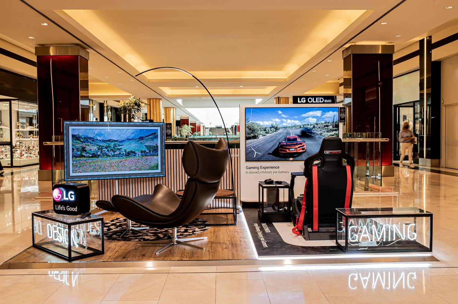 Με την κομψή σχεδίασή τους, οι LG OLED G και C series πρωταγωνιστούν στο εμπορικό κέντρο, χαρίζοντας εκθαμβωτικές εικόνες και λαμπερά χρώματα στους επισκέπτες. Και οι δύο σειρές χαρακτηρίζονται από το λεπτό design τους και ενσαρκώνουν το μινιμαλισμό, προσφέροντας μια ανεπανάληπτη εμπειρία θέασης και εικόνας. Οι G series συνδυάζουν τη χαλάρωση με την τέχνη και μετατρέπουν κάθε χώρο σε γκαλερί. Με τη λειτουργία Always Ready, εμφανίζουν έργα τέχνης με ρεαλιστική υφή και χρώμα, ενώ έχουν άψογη εφαρμογή στον τοίχο[1]. Αντίστοιχα, οι OLED C series διαθέτουν τόσο στενό πλαίσιο και σε συνδυασμό με τις κομψές βάσεις ταιριάζουν σε κάθε σπίτι και είναι η ιδανική επιλογή για home cinema και παιχνίδια. Για ρεαλιστικό παιχνίδι με δράση δίχως τέλος, οι LG OLED είναι μια πανίσχυρη μηχανή που βελτιώνει το gaming και προσφέρει την απόλυτη εμπειρία. Οι LG OLED, με αναβαθμισμένα χαρακτηριστικά και νέες προσθήκες, απεικονίζουν καθαρά και ομαλά το παιχνίδι, κάνοντάς το ακόμα πιο διασκεδαστικό.