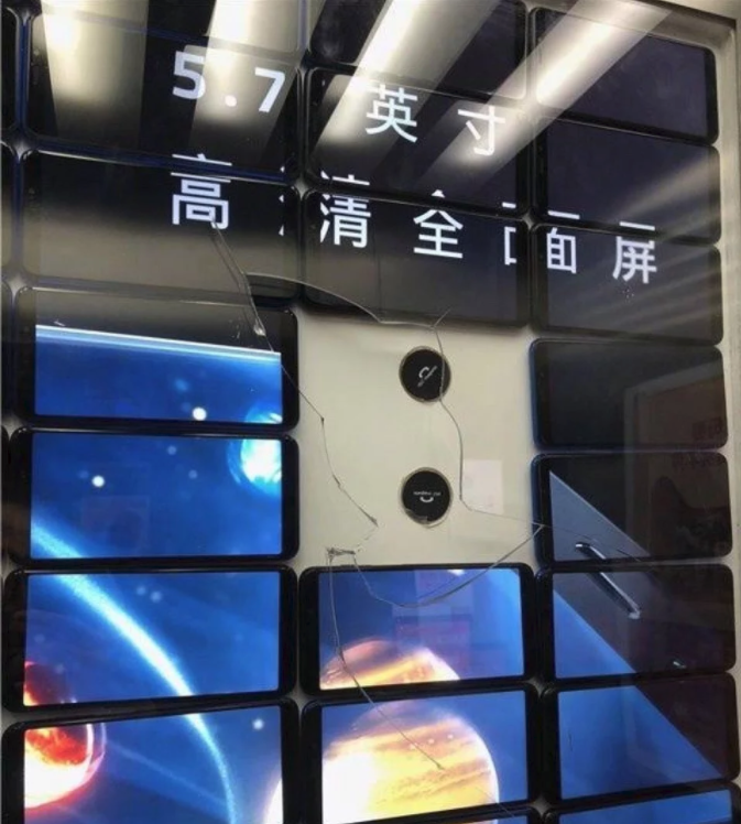 Η ιδέα ήταν πρωτοποριακή, όμως κάποιοι περαστικοί δεν αντιστάθηκαν και …έσπασαν το γυαλί του outdoor, κλέβοντας κάποιες από τις συσκευές, όπως βλέπουμε και στη φωτογραφία.