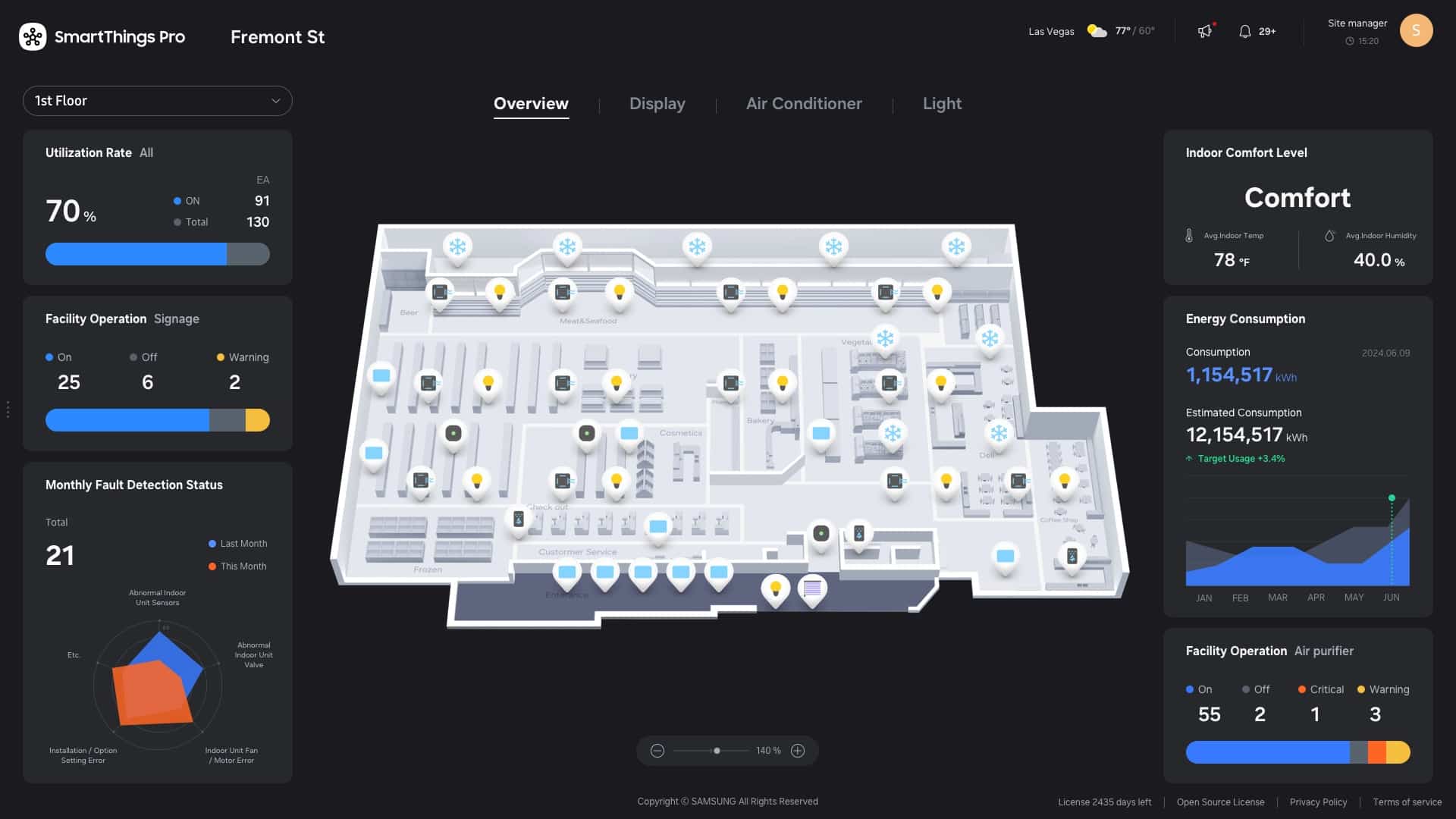 Επιπλέον, το SmartThings Pro επιτρέπει στους χρήστες να ελέγχουν την κατάσταση σύνδεσης διαφόρων συσκευών IoT μέσω ενός, φιλικού στη χρήση, πίνακα ελέγχου, ο οποίος με την τεχνολογία ΑΙ που ενσωματώνει, αναλύει τις συνδεδεμένες συσκευές, βοηθώντας έτσι τους χρήστες να χρησιμοποιούν τις συσκευές τους πιο αποτελεσματικά και να υιοθετούν πρακτικές εξοικονόμησης ενέργειας.