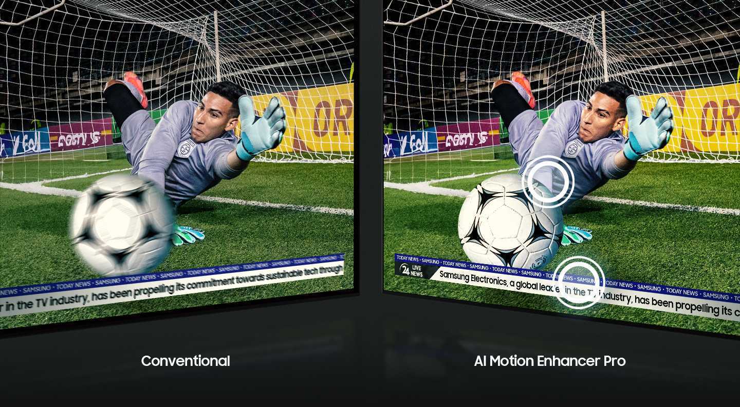 - AI Motion Enhancer Pro: Επιλύει κοινά προβλήματα σε αθλητικά περιεχόμενα — όπως η παραμόρφωση της μπάλας κατά την κίνησή της — κατά τη διάρκεια παρακολούθησης αθλητικών αγώνων υψηλής ανάλυσης, βάσει της δυνατότητας [2] που υποστηρίζεται από τον NQ8 AI Gen3. Η λειτουργία εντοπίζει αυτόματα τον τύπο του αθλήματος και χρησιμοποιεί βαθιά εκμάθηση (deep learning), για να εφαρμόσει το σωστό μοντέλο ανίχνευσης και απόδοσης της κίνησης της μπάλας.
