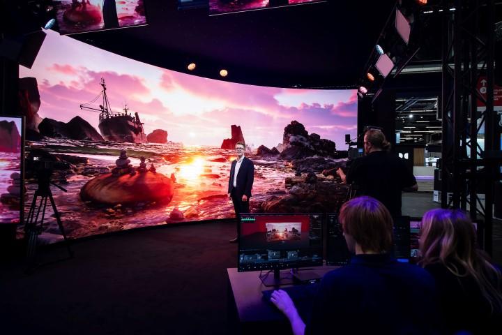 Η εκπληκτική τεχνολογία οπτικής απεικόνισης (visual display) της Samsung παρέχει ισχυρές δυνατότητες παραγωγής που διευρύνουν την πραγματικότητα. Τα studio παραγωγής μπορούν να χρησιμοποιούν τοίχους LED μεγάλου μεγέθους για τη δημιουργία εικονικού περιεχομένου, ενσωματώνοντάς τους με τεχνολογία οπτικών εφέ σε πραγματικό χρόνο, για τη μείωση του χρόνου και του κόστους παραγωγής περιεχομένου. Το Wall for Virtual Production μπορεί να ενισχύσει τα έργα προσθέτοντας ρεαλιστικά επίπεδα λεπτομέρειας, υφής, όγκου και αποχρώσεων σε περιβάλλοντα δημιουργίας εικονικού περιεχομένου. Οι νέες επιλογές μοντέλων IVC, P1.68 και P2.1, περιλαμβάνουν ένα εύρος καμπυλότητας που μπορεί να εκτείνεται έως και 5.800R, δημιουργώντας ένα ρεαλιστικό οπτικό πεδίο. Η οθόνη διαθέτει, επίσης, μια ενημερωμένη λειτουργία genlock που διατηρεί το The Wall στο ίδιο επίπεδο με τα σήματα του συστήματος, ώστε να μην υπάρχουν χαμένα ή διπλασιασμένα καρέ. Αυτή η δυνατότητα – μαζί με τη βελτιωμένη λειτουργία μετατόπισης φάσης που ρυθμίζει τη χρονική καθυστέρηση μεταξύ κάμερας και οθόνης – εξασφαλίζει μια τέλεια εικόνα.