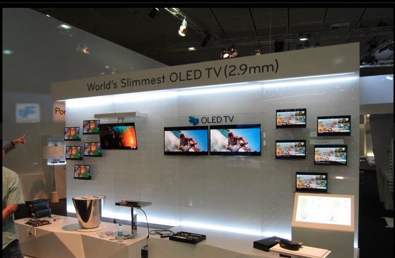 Φαίνεται ότι οι Κορεάτες το έχουν πάρει πατριωτικά και προσπαθούν να καταπλήξουν το κοινό της IFA με τα επιτεύγματά τους. Συγκεκριμένα στο περίπτερο της LG παρουσιάστηκαν δύο καινοτόμα μοντέλα τηλεοράσεων που έκλεψαν τις εντυπώσεις: Η 31 ιντσών 3D OLED τηλεόραση, άφησε άναυδο το κοινό εξαιτίας του μόλις 2,9 χιλιοστών (!) πάχους της σε συνδυασμό πάντα με την υπέροχη εικόνα που αναπαρήγαγε. Ούτε ψύλλος στον κόρφο μας βέβαια για την τιμή ενός τέτοιου τεχνολογικού θαύματος… Η LEX8 είναι η πρώτη τηλεόραση στον κόσμο που ενσωματώνει νανοτεχνολογία στον οπίσθιο FULL LED φωτισμό της τηλεόρασης, χάρη στην οποία οι εικόνες είναι καθαρότερες , ομαλότερες (διαθέτει επεξεργαστή ανανέωσης καρέ στα 400 MHz) και πιο φωτεινές από ποτέ. Το πάχος της δεν ξεπερνά τα 8.8 χιλιοστά τη στιγμή που το πάνελ της έχει διαγώνιο 55 ίντσες. Είπε κανείς κάτι;