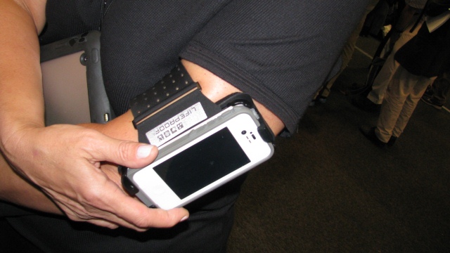 Από κοντά και η βολική θήκη με την οποία το iPhone θα στερεωθεί στο μπράτσο σας –ιδανική για τους λάτρεις της γυμναστικής αφού μπορούν να ακούν τη μουσική τους και φυσικά να μη χάνουν κλήση χωρίς το κινητό να μπλέκεται στα πόδια ή τα χέρια τους. Παρ’ ότι στην IFA ήταν λίγο δύσκολο να βρούμε χιόνι (ο καιρός στο Βερολίνο παραμένει καλοκαιρινός), οι άνθρωποι της LifeProof μας διαβεβαίωσαν πως οι θήκες τους αντέχουν σε πάγο, κρύο και χιόνι αλλά και ζέστη, σκόνη, νερό, υγρά, άμμο και πτώσεις! Είναι συμβατές με iPhone 4/4S και iPad με τις τιμές τους να εντοπίζονται στα 63,58 ευρώ και 127,18 ευρώ αντίστοιχα.