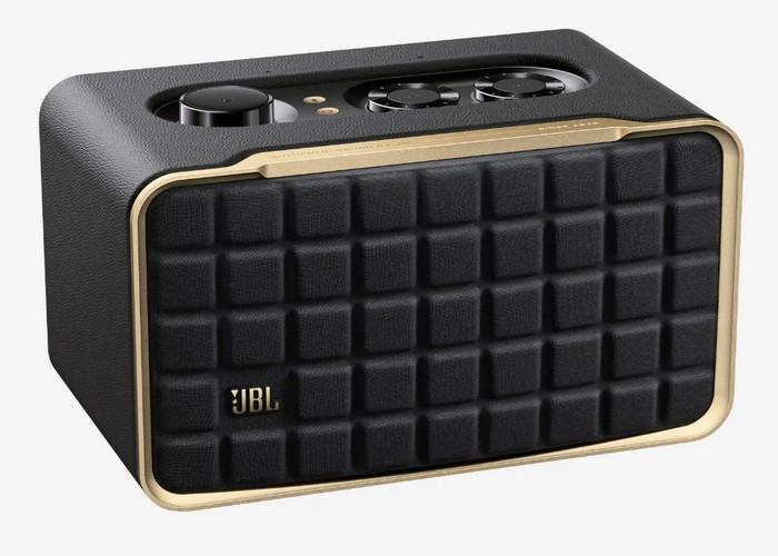 Αντλώντας σχεδιαστική έμπνευση από το ηχείο των 70s L 100, η JBL έδωσε στη σειρά Authentics μια ξεχωριστή εμφάνιση με μάσκα Quadrex με μοτίβο πλέγματος, πλαίσιο αλουμινίου τυλιγμένο με δέρμα σε μαύρο και χρυσό χρώμα.