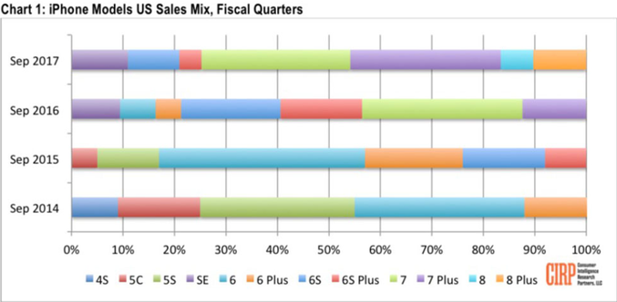 Σύμφωνα με το CIRP, τα iPhone 8/8 Plus αντιπροσώπευαν το 16% του συνόλου πωλήσεων iPhone κατά τη διάρκεια του τριμήνου που έληξε την 1η Οκτωβρίου. Το iPhone 8 κάλυψε το 6% των σχετικών πωλήσεων αυτήν την περίοδο, ενώ το iPhone 8 Plus αντιπροσώπευε το 10%. Αν συγκρίνετε τα νούμερα με το 24% που είχαν πετύχει τα iPhone 6s / 6s Plus κατά το πρώτο οικονομικό τρίμηνο της ζωής τους πίσω στο 2015, μπορείτε να διαπιστώσετε και μόνοι σας πως τα τελευταία μοντέλα iPhone δεν τα πάνε και τόσο καλά σε πωλήσεις…