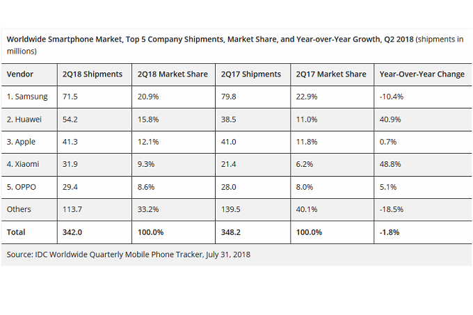 Σε μία ιστορική στιγμή για την παγκόσμια ανάπτυξή της, η Huawei πλέον αποτελεί το δεύτερο μεγαλύτερο κατασκευαστή smartphones στον κόσμο, σύμφωνα με τα στοιχεία που δημοσίευσε η IDC για το δεύτερο τρίμηνο του 2018.