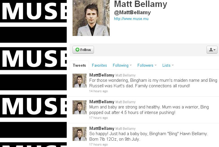 Νομίζουμε πως στο μυαλό του ζευγαριού δεν ήταν να διαφημίσουν τη μηχανή αναζήτησης της Microsoft… Κι όμως εν μέρει η μηχανή αναζήτησης Bing βγήκε κερδισμένη από την απόφαση της Kate Hudson και του Matt Bellamy των Muse να ονομάσουν το νεογέννητο μωράκι τους “Bing”. Για τη γέννηση, αλλά και το όνομα του μικρού Bingham, φρόντισε να μας ενημερώσει ο χαρούμενος μπαμπάς Matt -πού αλλού- στο twitter του, αναφέροντας το γεγονός αλλά και το… όνομα που έκανε μερικούς εκεί στη Microsoft να χαμογελάσουν για τη δωρεάν διαφήμιση.
