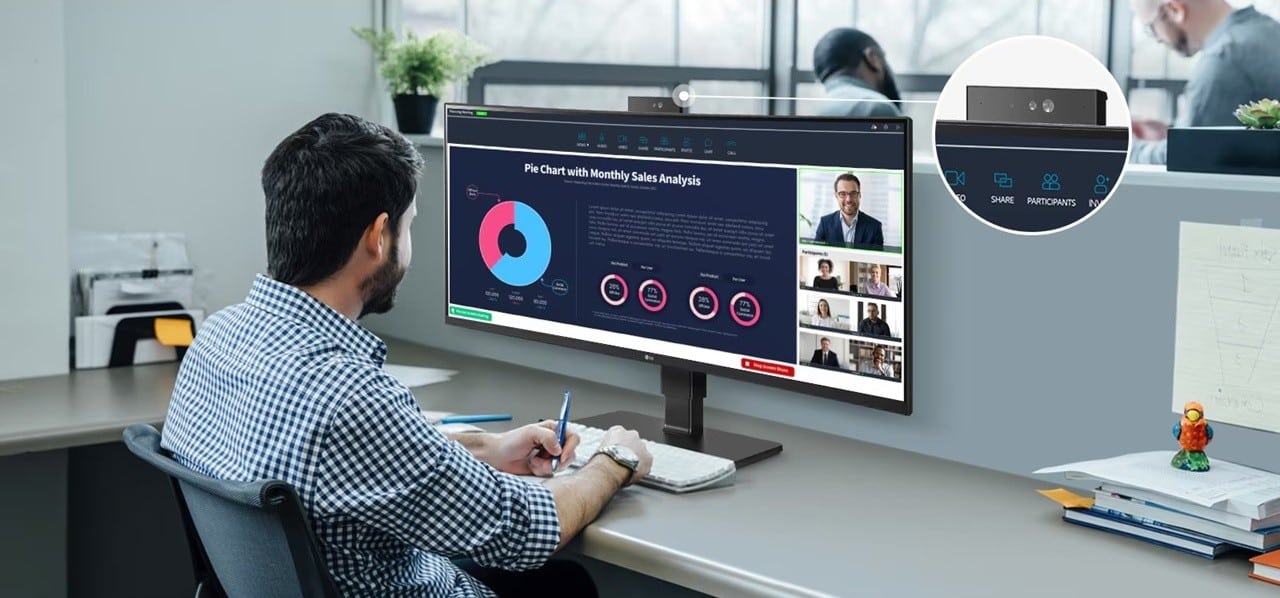 Με αναλογία διαστάσεων 21:9, η UltraWide οθόνη προσφέρει περισσότερο χώρο για multitasking, επιτρέποντας στους χρήστες να έχουν ανοιχτά πολλαπλά παράθυρα ταυτόχρονα. Επιπλέον, η ενσωματωμένη webcam Full HD με μικρόφωνο κάνει τις τηλεδιασκέψεις απλές και ασφαλείς, εξασφαλίζοντας κρυστάλλινη ποιότητα ήχου και εικόνας.