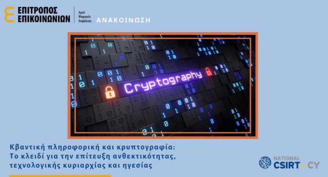 Με σκοπό την υποστήριξη της εφαρμογής της στρατηγικής κυβερνοασφάλειας και των σχετικών νομοθεσιών, ο ENISA δημοσίευσε δύο εκθέσεις με θέμα την κρυπτογραφία. Η πρώτη επικεντρώνεται στις επερχόμενες αποδιοργανώσεις της μετα-κβαντικής πληροφορικής στην υφιστάμενη υποδομή κυβερνοασφάλειας και πως θα πρέπει να μετριαστούν.