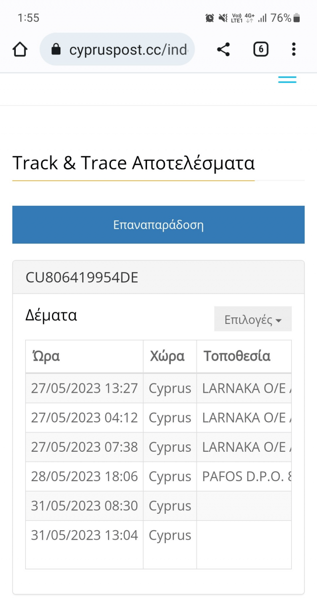 1. Τα μηνύματα σε κινητό δεν παραπέμπουν στην επίσημη ιστοσελίδα του Τμήματος www.cypruspost.post αλλά σε www.cypruspost.post.cy ή govlogncy.top/index ή cypruspost.cc/index ή άλλη ιστοσελίδα με πιθανή εμφάνιση του λογότυπου των Κυπριακών Ταχυδρομείων.