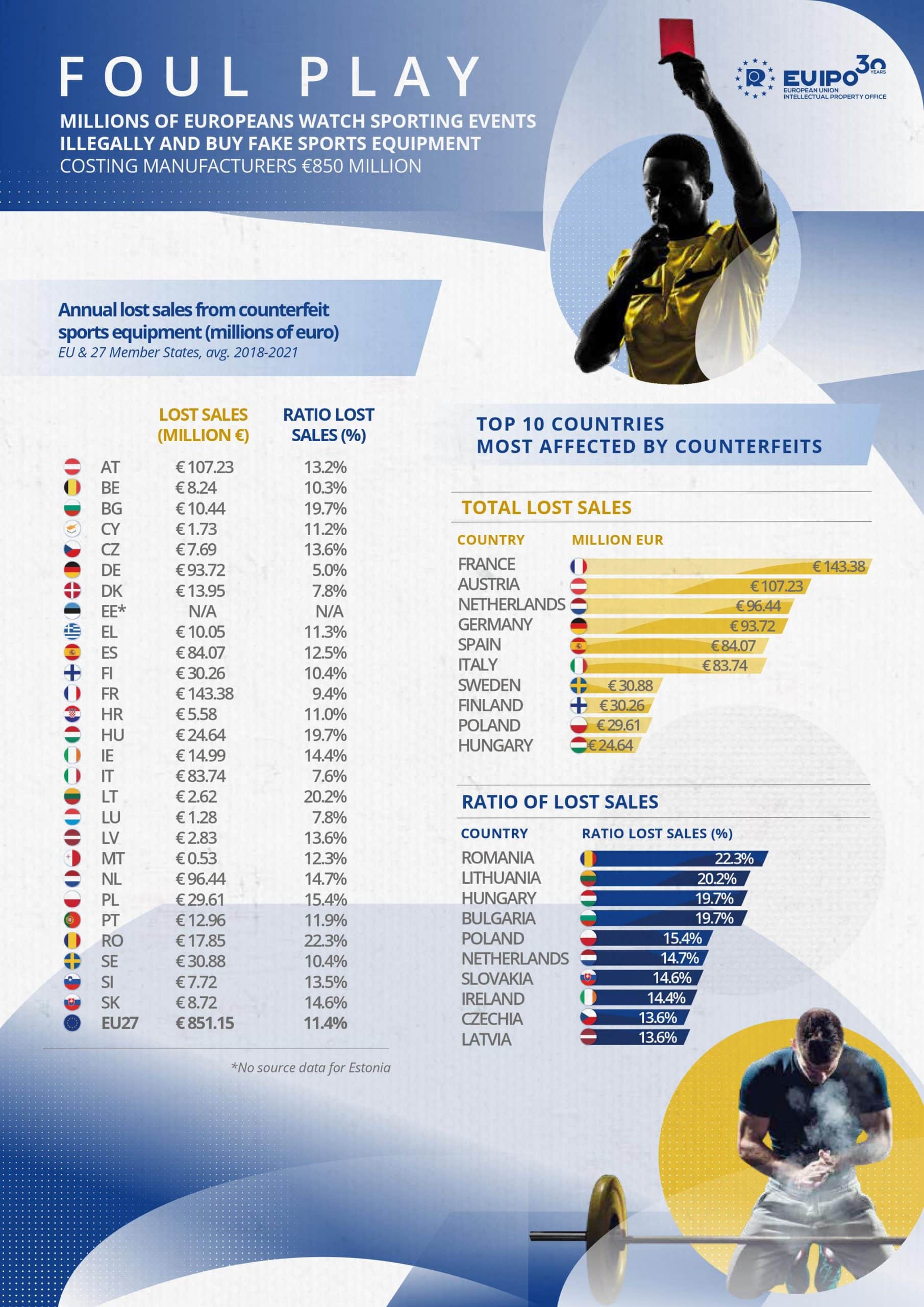 Με τον χαρακτηριστικό τίτλο «Αθέμιτο παιχνίδι», βασικό συμπέρασμα της μελέτης είναι ότι εκατομμύρια ευρωπαίοι καταναλωτές παρακολουθούν παράνομα αθλητικές διοργανώσεις και αγοράζουν προϊόντα παραποίησης/απομίμησης αθλητικού εξοπλισμού, με την συνολική εκτιμώμενη απώλεια για τους νόμιμους κατασκευαστές να εκτιμάται σε επίπεδα άνω των 850 εκατομμυρίων ευρώ.