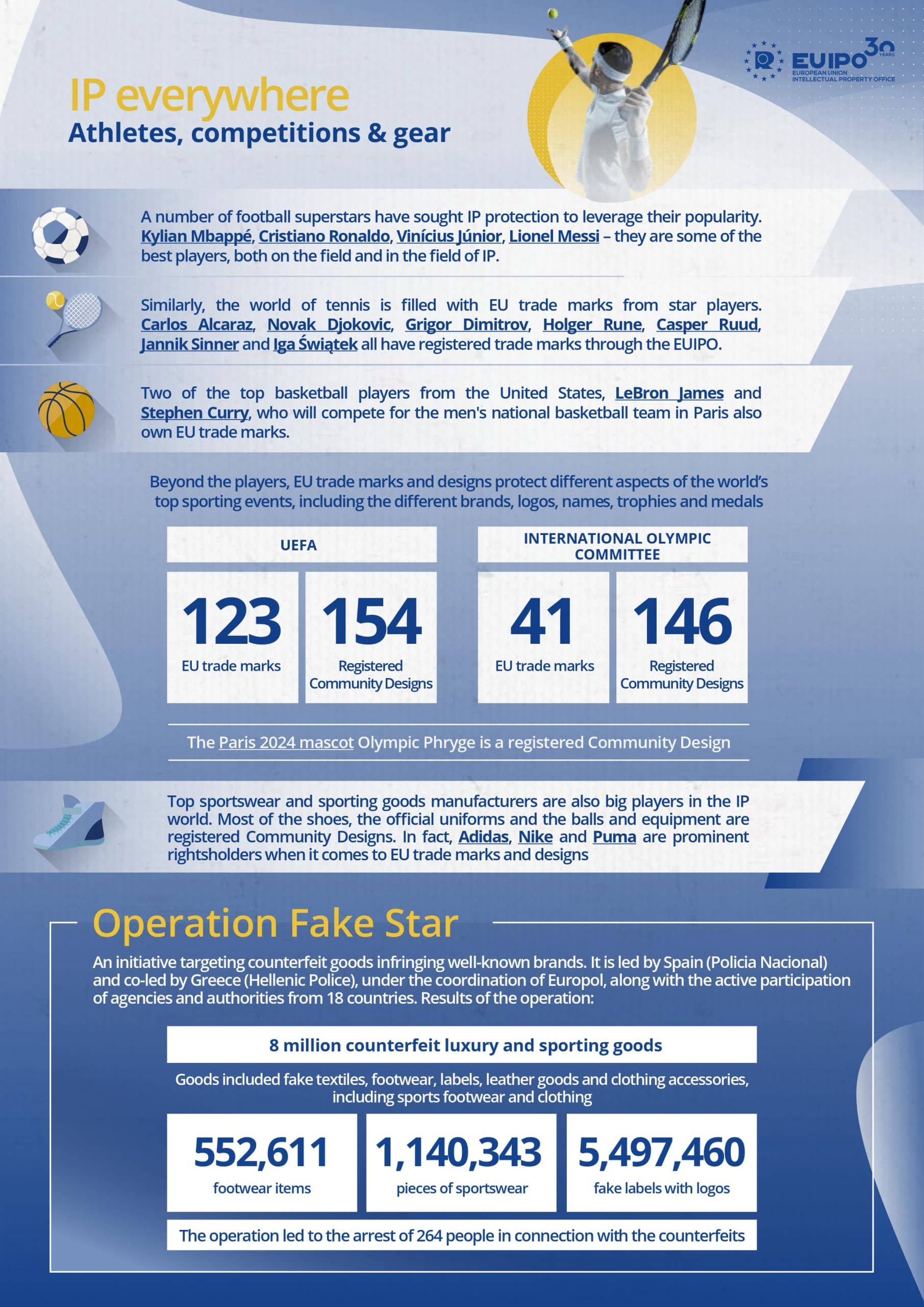 Τέλος, η μελέτη σημειώνει επίσης τις προσπάθειες που γίνονται στην Ευρώπη κατά των παραποιημένων προϊόντων, αναφέροντας την επιχείρηση Fake Star, που είχε ως αποτέλεσμα την κατάσχεση 8 εκατομμυρίων πλαστών αντικειμένων αξίας 120 εκατομμυρίων ευρώ και τη σύλληψη 264 ατόμων.