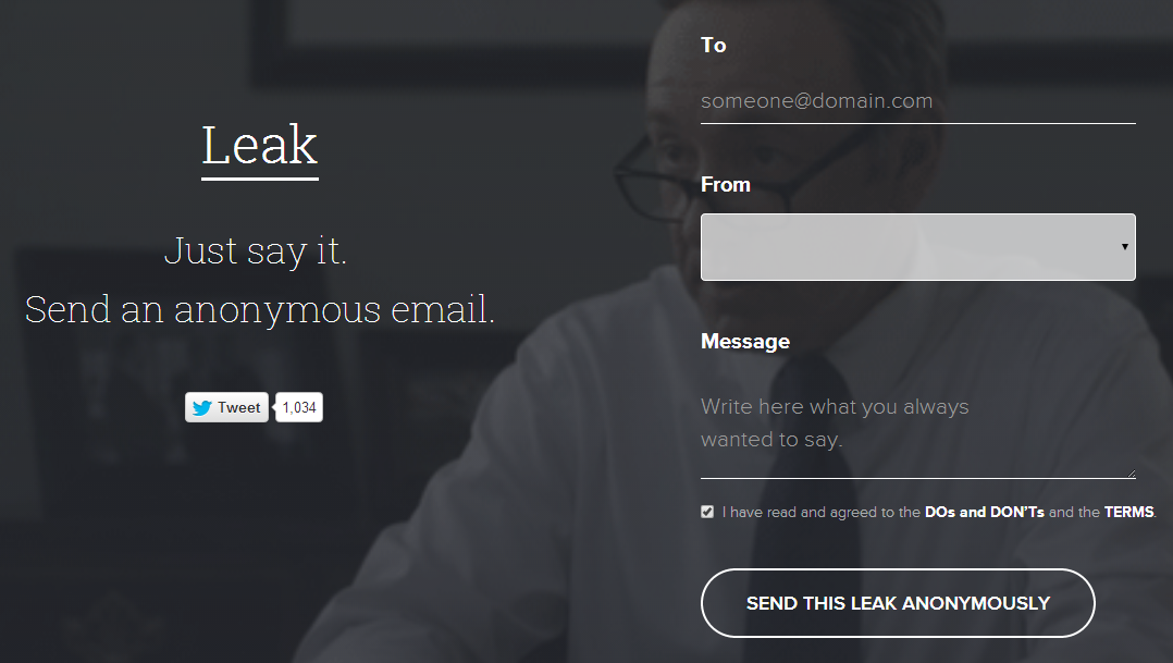 Αν έχετε κατά νου συγκεκριμένους ανθρώπους στους οποίους θέλετε να αποκαλύψετε ανώνυμα καταστάσεις και επίσης γνωρίζετε τα email αυτών, τότε η υπηρεσία Leak είναι ό,τι πρέπει για εσάς.