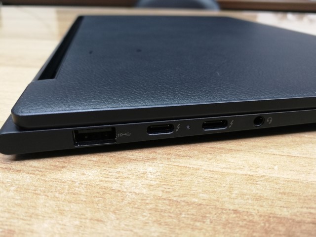 Στη συσκευασία θα βρείτε φορτιστή 65W και ένα dock που καταλαμβάνει μια Type-C θύρα για να σας προσφέρει μια VGA, μια HDMI και μια USB Type-A. Ίσως το χρειαστείτε καθώς οι διαθέσιμες θύρες στην αριστερή πλευρά της συσκευής είναι μια USB-A 3.2 Gen 1 και δύο Thunderbolt 4 (Type-C), όπως και ένα audio jack. Η “πλάτη” του Yoga 9i έχει δερμάτινη επένδυση και αποπνέει υψηλή ποιότητα, ενώ το φινίρισμα είναι άψογο χωρίς κανένα… “rough edge” και δείχνει ανθεκτικό στο χρόνο.