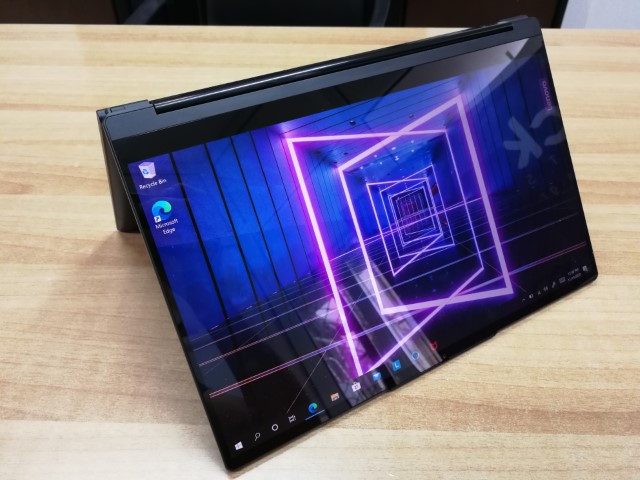 Η οθόνη αφής είναι 14″ με IPS panel UHD ανάλυσης (3840×2160 pixels), με φωτεινότητα έως 500 nits, υποστήριξη Dolby Vision, VESA HDR400 και κάλυψη του 90% της χρωματικής παλέττας DCI-P3. Γενικότερα είναι το μεγάλο ατού του Yoga 9i, όμως χωρίς τις αντίστοιχες επιδόσεις από τον επεξεργαστή και τη GPU, είναι δώρο-άδωρον. Ευτυχώς ο 11ης γενιάς Intel Core-i7 1185G7 στα 3GHz, μαζί με 8GB LPDDR4X RAM (έως 16GB) και έως 1TB αποθηκευτικού χώρου (SSD PCIe M.2) προσφέρουν εξαιρετικές επιδόσεις, υψηλά framerates, άνετο multi-tasking και ό,τι άλλο επιθυμείτε.