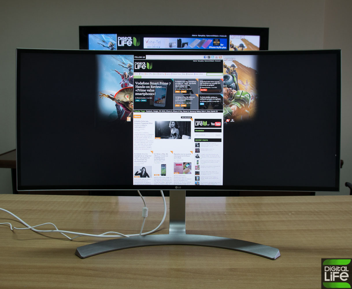 Επιπλέον, η πρόταση της LG χαρίζει χρόνο απόκρισης στα 5ms GTG, με την φωτεινότητα της να ανέρχεται στα 300 cd/m2 και το contrast ratio στα 5.000.000:1. Ειδικότερα σε ότι έχει να κάνει με την gaming συμπεριφορά του curved monitor της LG, η κορεατική εταιρεία έκανε εξαιρετική δουλειά, καθώς η οθόνη της προσφέρει αψεγάδιαστο ghost-free gameplay, ενώ παράλληλα δεν παρατηρήσαμε το παραμικρό tearing. Ίσως να χρειαζόταν λίγη παραπάνω δουλειά στο contrast που σε ορισμένες περιπτώσεις προσέφερε ένα πιο… “ξεθωριασμένο” look, παρόλα αυτά (εάν εξαιρέσουν την προαναφερθείσα μικρή “ατασθαλία”) η συνολική απόδοση της 34άρας οθόνης της LG δείχνει να ακολουθεί τα υψηλά ποιοτικά στάνταρ της κατηγορίας που ανήκει.