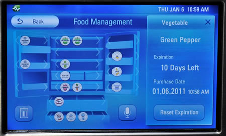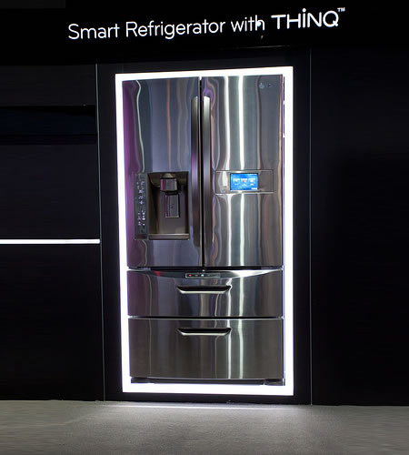 Το νέο της “έξυπνο” ψυγείο μπορεί να συνεργαστεί με smartphones και tablets και μέσω αυτών να έχει πρόσβαση σε updates και πολλές ακόμη πληροφορίες. Χάρη στο Smart Manager, μπορεί να ενημερώσει το χρήστη για το τι βρίσκεται μέσα στο ψυγείο και πότε λήγει! Αυτή η πληροφορία μπορεί να είναι διαθέσιμη στην ταμπλέτα του χρήστη ακόμη και αν είναι εκτός (π.χ. στο super market και θέλει να ξέρει τι λείπει από το ψυγείο του για να κάνει αγορές!). Επίσης, μπορεί να προτείνει συνταγές με βάση τα υλικά που βρίσκονται μέσα. Επίσης, η οθόνη του μετατρέπεται σε notepad για να αφήσετε σημειώματα στην οικογένειά σας. Cool!