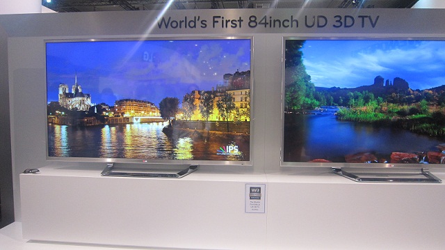 Ακόμη μία μεγάλη που μας έκανε να χαζεύουμε για ώρα. Η 84άρα 4K της LG ανακοινώθηκε την προηγούμενη εβδομάδα και απ’ ό,τι φαίνεται, οι Κορεάτες που μπορούν να αποκτήσουν κάτι τόσο premium θα μπορούν να την απολαμβάνουν άμεσα. H UD 3D 84LM9600 δίνει το παρόν, όμως, και στην IFA 2012 εντυπωσιάζοντας όσους παρευρέθησαν στις δύο ξεναγήσεις booth της εταιρείας χθες. Ήταν. για την ακρίβεια, μαζί με την 55άρα OLED της εταιρείας, οι attactions του περιπτέρου και παρόλο που η OLED είχε ένα συγκριτικό πλεονέκτημα, καθώς δύο εντυπωσιακές κοπέλες είχαν αναλάβει να σε κάνουν να την… προσέξεις, η 4K ήταν δύσκολο με τέτοια χαρακτηριστικά να περάσει απαρατήρητη. Ιδού, λοιπόν, η ultra HD πρόταση των Κορεατών.