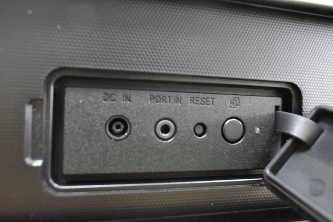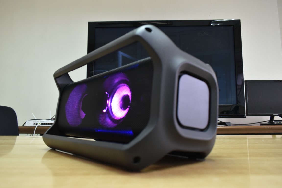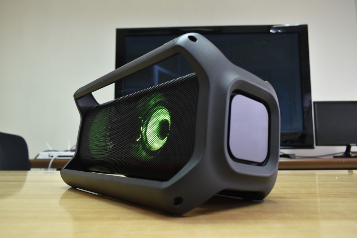 Το ηχείο έχει βάρος 1,2Kg και έτσι μεταφέρεται εύκολα, κυρίως χάρη στις πλαστικές χειρολαβές που διαθέτει, οι οποίες ταυτόχρονα λειτουργούν και ως στηρίγματα για να το τοποθετήσετε σε οποιαδήποτε οριζόντια ή κατακόρυφη θέση θέλετε. Έχει διαστάσεις 220 x 129 x 119 χιλιοστών και το κυρίως σώμα του αποτελείται από μαύρο ματ πλαστικό, χωρίς όμως να υπολείπεται σε “αίσθηση” ποιότητας κατασκευής. Τα πλήκτρα στο πάνω μέρος του είναι ποιοτικά, μεγάλα και φωτιζόμενα, ενώ σας επιτρέπουν να ελέγξετε αρκετά πράγματα χωρίς χρήση κάποιου app. Στο “πίσω” μέρος του, ένα ελαστικό πορτάκι στεγανοποιεί το χώρο των υποδοχών φόρτισης, audio-in και το reset button.