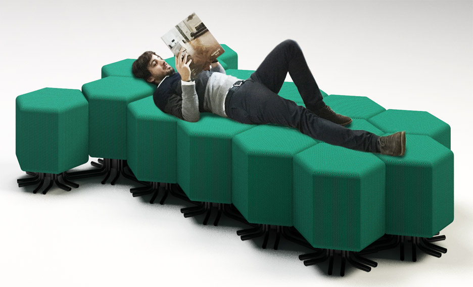 Ένα internet-connected modular έπιπλο, όπως βλέπετε και στις φωτό, που μπορεί να μετατραπεί εύκολα στα πάντα: πολυθρόνα, καναπές, μία αναπαυτική καρέκλα, ακόμη και κρεβάτι ή ό,τι άλλο εμπνευστεί η φαντασία σας,