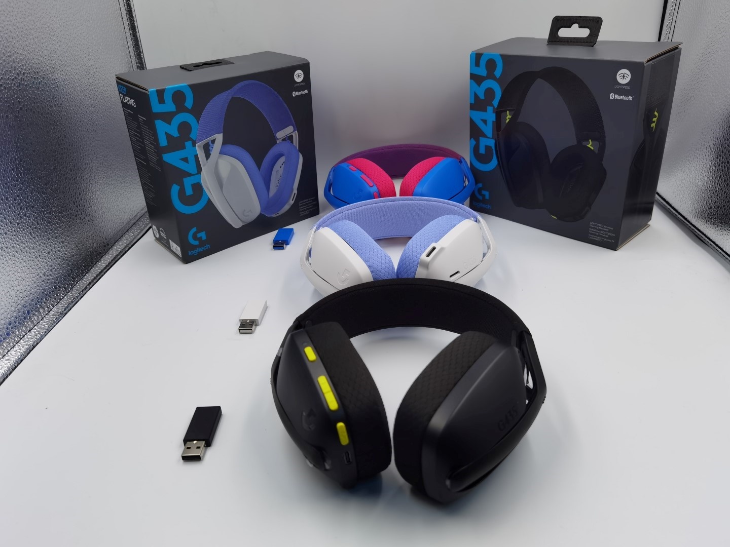 Από τη στιγμή που απευθύνεται σε ένα αρκετά νεανικό gaming κοινό, τα G435 έρχονται σε τρεις ιδιαίτερους χρωματισμούς, καθώς εκτός του μαύρου με στοιχεία κίτρινου νέον, τα μέλη της κοινότητας των gamers μπορούν να επιλέξουν και δύο ακόμη trendy χρωματικές επιλογές: μπλε με σκούρο φούξια και υπολευκό με λιλά. Αν μη τι άλλο, το σχεδιαστικό team της Logitech έδωσε μεγάλη βαρύτητα στον εξωτερικό σχεδιασμό, αποφεύγοντας ωστόσο τις πιο φαντεζί επιλογές, καθώς τα ακουστικά δεν διαθέτουν κάποιον χαρακτηριστικό RGB φωτισμό.