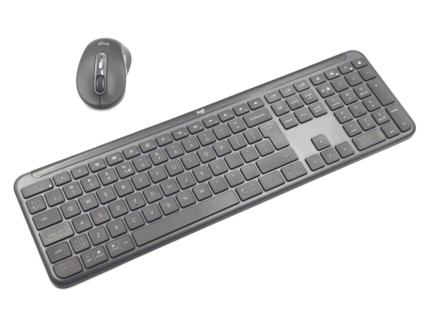 Το πληκτρολόγιο είναι μεγάλου μεγέθους και λεπτό, με κοντά πλήκτρα στα πρότυπα των πληκτρολογίων των laptops. Η απόσταση για την ενεργοποίηση κάθε πλήκτρου είναι περίπου 1 χιλιοστό, γεγονός που διαβεβαιώνει μια άνετη αλλά ταυτόχρονα πρακτική εμπειρία πληκτρολόγησης. Τα δύο «ποδαράκια» του προσαρμόζονται όπως θέλει ο χρήστης, ώστε εκείνος να σηκώνει όσο θέλει το πίσω μέρος του πληκτρολογίου ώστε αυτό να ταιριάζει με τη στάση των καρπών που προτιμά. Το mouse είναι μικρό, με καμπύλες και ανάγλυφες πλευρές ώστε να βελτιώνει το πιάσιμο, κάνοντάς το ιδανικό για μεσαίες και μικρές παλάμες. Και οι δύο συσκευές προσφέρονται στο χρώμα του γραφίτη ή σε λευκό προς το μπεζ για να ταιριάζουν με την αισθητική των γραφείων. Το πληκτρολόγιο, όμως, δεν έχει φωτισμό, κάτι που μπορεί να αποτελέσει μειονέκτημα σε χώρους με χαμηλό φωτισμό. Στον αντίποδα βέβαια, εξαιτίας αυτού του στοιχείο η διάρκεια ζωής της μπαταρίας του είναι μεγαλύτερη.