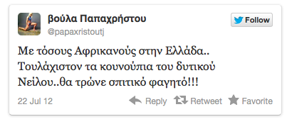 Ζητώ δημόσια συγγνώμη για το πραγματικά ατυχές και κακόγουστο αστείο που δημοσίευσα από τον προσωπικό μου λογαριασμό στο Twitter. Λυπάμαι και ντρέπομαι για τις αρνητικές αντιδράσεις που προκάλεσα, γιατί σε καμία περίπτωση δεν είχα σκοπό να θίξω κανέναν, ούτε να προσβάλλω τα ανθρώπινα δικαιώματα.