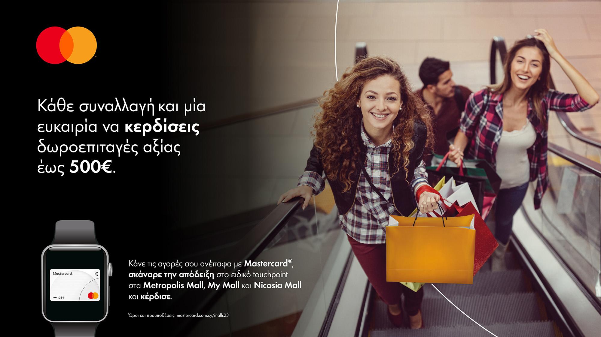 Δωροεπιταγές έως €500 έχουν τη δυνατότητα να κερδίσουν οι κάτοχοι των καρτών Mastercard που θα πραγματοποιήσουν ανέπαφα τις αγορές τους στο Nicosia Mall, My Mall και Metropolis Mall. Πιο συγκεκριμένα, από την 1η Νοεμβρίου και έως τις 31 Δεκεμβρίου 2023, όσοι κάτοχοι καρτών Mastercard πραγματοποιήσουν τις συναλλαγές τους ανέπαφα (με κάρτα, ή mobile συσκευή) κατά τη διάρκεια της επίσκεψής τους στα εμπορικά κέντρα Nicosia Mall στη Λευκωσία, My Mall στη Λεμεσό και Metropolis Mall στη Λάρνακα, έχουν τη δυνατότητα να κερδίσουν άμεσα πλούσια δώρα.