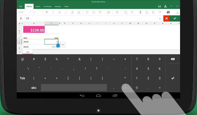Το τμήμα Microsoft Garage το οποίο απαρτίζεται από διάφορους υπαλλήλους της εταιρίας και ασχολείται με projects κάθε λογής, κυκλοφόρησε ένα Android keyboard για tablets με ονομασία Keyboard for Excel.