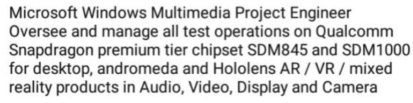 Ένα job description, που δημοσιεύτηκε από έναν εργαζόμενο της Qualcomm στο LinkedIn, αναφέρει την ύπαρξη του εν λόγω chip όπως βλέπετε και ακολούθως, αν και η Microsoft, προς το παρόν, δεν έχει κάνει κανένα σχόλιο.