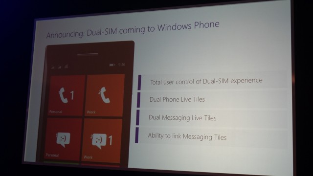 Μία ακόμη σημαντική αλλαγή είναι η υποστήριξη dual-SIM (και από αυτό το σημείο φαίνεται η έμφαση που θέλει να δώσει η Microsoft σε ανερχόμενες αγορές ώστε να ανταγωνιστεί το Android).